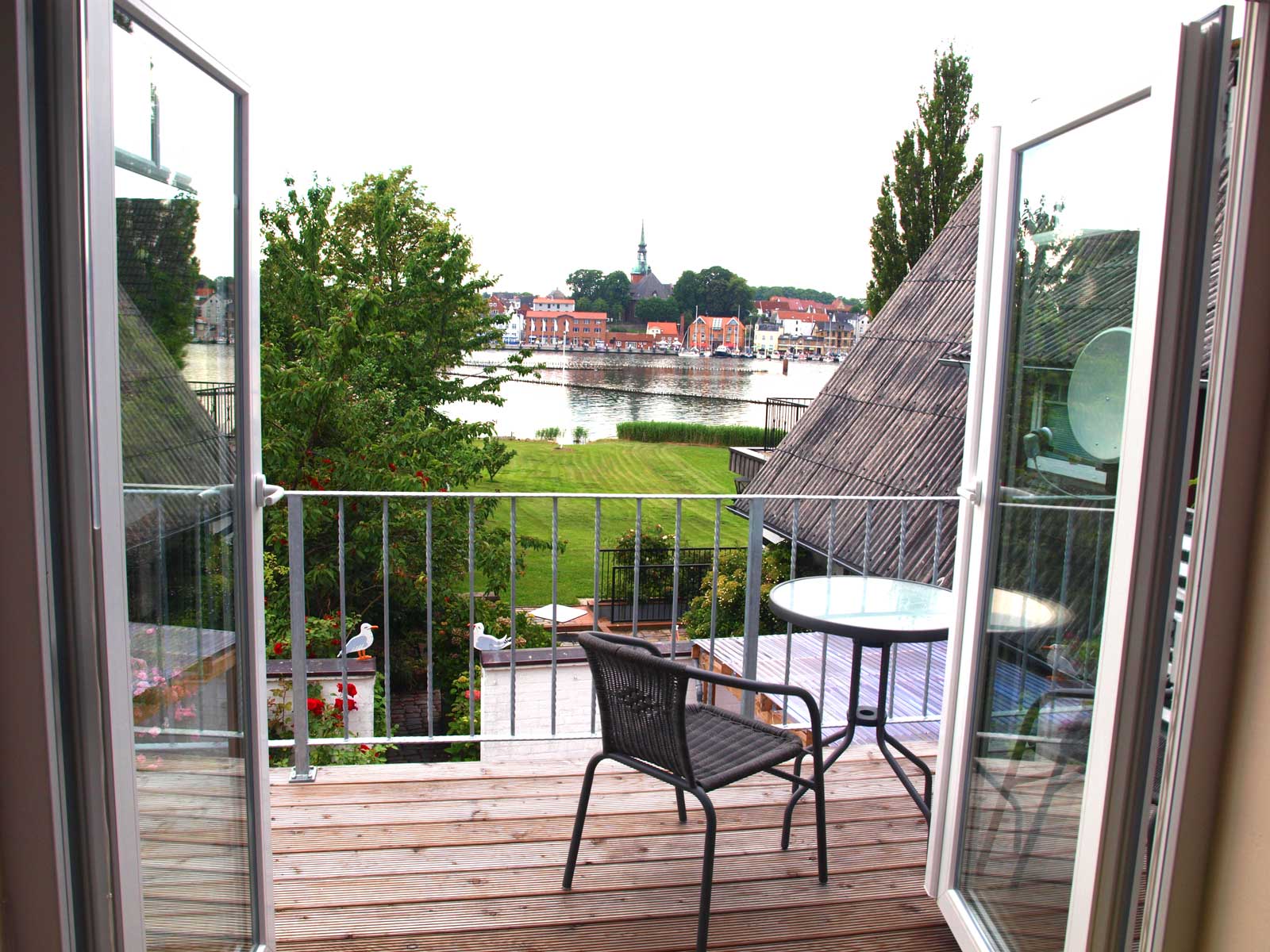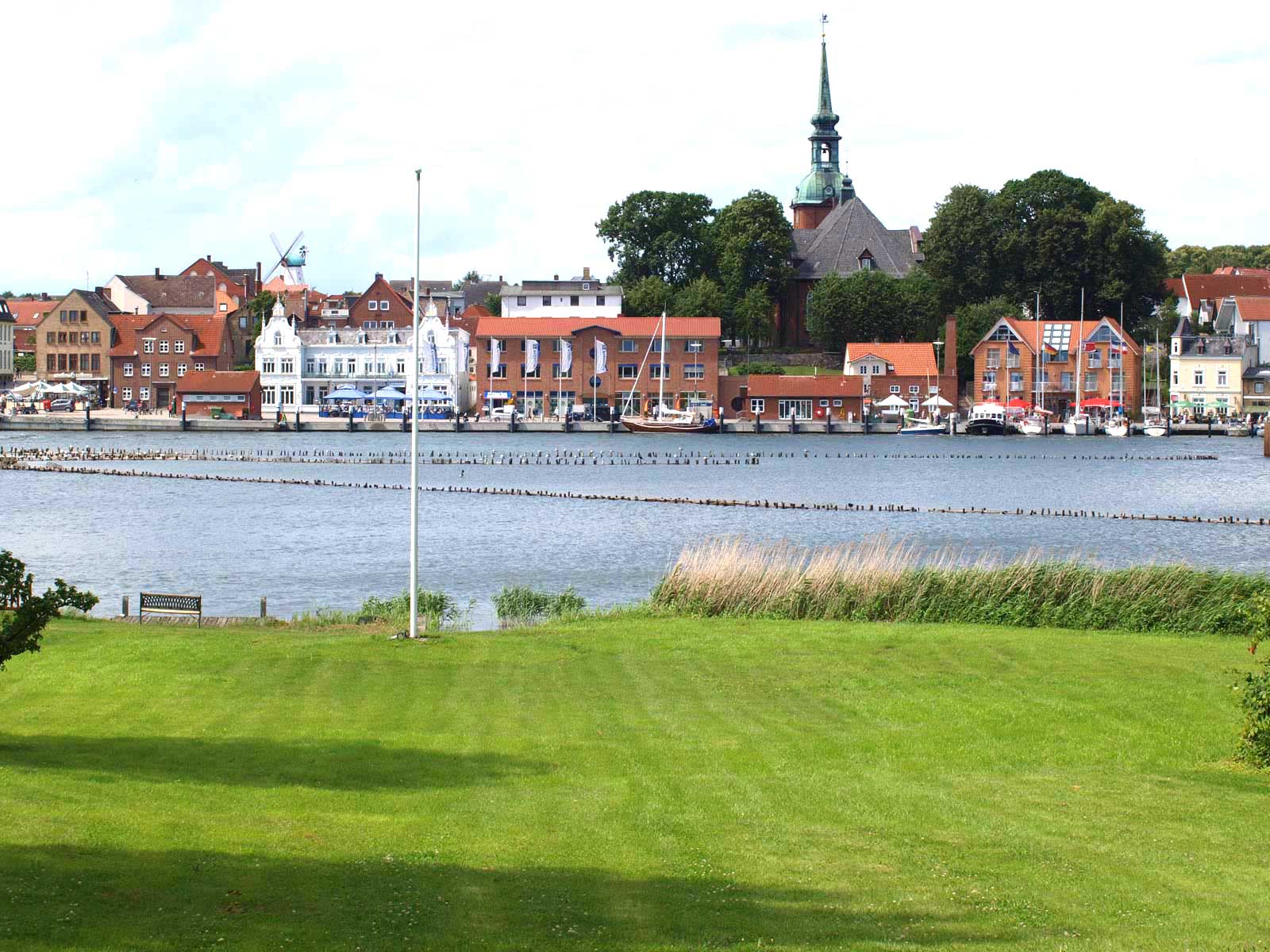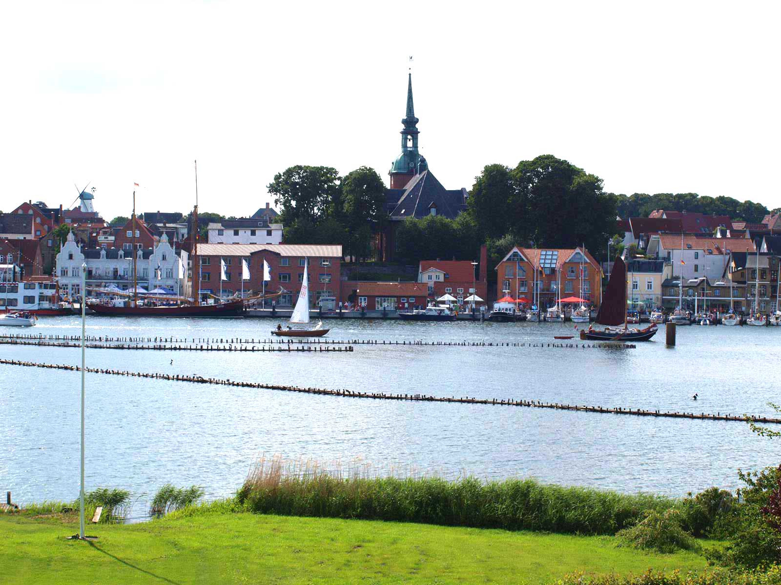 Schönes Ferienhäuschen mit 2 Bettenplätzen im Schiffergang 1 in 24376 Kappeln an der Schlei und nahe der Ostsee. Das große Grundstück ist direkt am Schleiufer und besitzt einen Steg. Aus dem Haus haben Sie einen direkten Blick auf die Schlei und die Kappelner Skyline. Genießen Sie aus dem Wohnzimmer oder vom Balkon den einmaligen Blick über die Schlei (Ostseefjord) auf den letzten Heringszaun Europas und auf den Hafen und die Altstadt von Kappeln (Deekelsen). Vom Ufer neben unserem Ferienhaus wurden auch Aufnahmen für die ZDF Serie: "Der Landarzt" aufgenommen. Die Kleinstadt Kappeln mit ca. 10.000 Einwohnern ist im Film der fiktive Ort "Deekelsen" an der Schlei. Die Raumaufteilung ist wie folgt: Im Erdgeschoss : Wohnraum mit Essplatz und offener Küche incl. Einbauküche ,1 Duschbad mit WC, kleiner Abstellraum. Im Obergeschoss : 1 Schlaf und Wohnraum mit 1 Doppelbett und 1 Sofa mit 2 Relax-Sesseln, insgesamt ca. 65 qm. Wir empfehlen dieses Haus für 2 Personen, dafür ist es optimal, evtl. mit Kleinkind. Eine schöne separate Terrasse vor dem Haus und ein großer Garten stehen Ihnen ebenso wie ein PKW Stellplatz zur Verfügung. Weitere Stellplätze befinden sich in ausreichender Zahl nur ca. 50m entfernt. Das Ufergrundstück ist 2700 m² groß und bietet genug Platz zum Sonnenbaden, relaxen oder spielen. Der Schiffergang ist eine ruhige Anlieger-Sackgasse. Zum Schleiufer sind es nur wenige Schritte. Hier befindet sich Ihr privater kleiner Holzsteg mit Sitzgelegenheit. Von dort haben Sie einen der schönsten Ausblicke auf den neuen Heringszaun, die Schleibrücke, den Hafen mit Ausflugsschiffen, Gastliegerhafen und auf die Altstadt von Kappeln – genießen Sie es! Natürlich können Sie auch vom Balkon oder aus dem Wohnzimmer die Schlei und den Heringszaun bewundern. Mit den schönen Eindrücken krönen Sie den Tag bei einem traumhaften Sonnenuntergang über Kappeln und der Schlei von der Terrasse oder aus dem Garten Ihres Ferienhauses. Sie können von unserem Ferienhaus zu Fuß, mit dem Rad oder dem Auto, Kappeln und die Landschaftsteile Angeln und Schwansen und die nahe Ostsee erkunden. In der Nähe gibt es viele weitere Sehenswürdigkeiten wie das Landesmuseum Schloß Gottorf und das Wikingermuseum Haitabu in Schleswig, das Wasserschloß Glücksburg, Multi Mar Wattforum (Wale, Watt, Weltmeere) in Tönning, die Phänomenta (eine interaktive Ausstellung) in Flensburg, eine Museumsbahn fährt zwischen Kappeln und Süderbrarup, Fischmarkt in Kappeln und Eckernförde, Schleifahrten mit einem Raddampfer, Tolkschau Freizeitpark, Damp Wellnesscenter mit Entdeckerbad für die Kleinen und vieles mehr. Weitere Sehenswürdigkeiten in Kappeln Sehenswürdigkeiten in der Schlei Region
