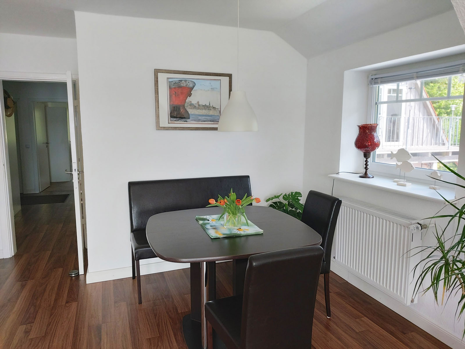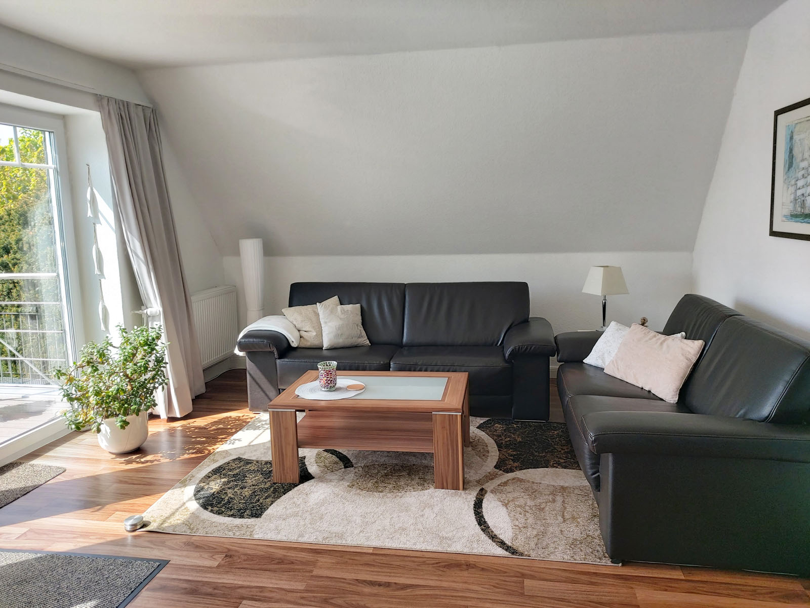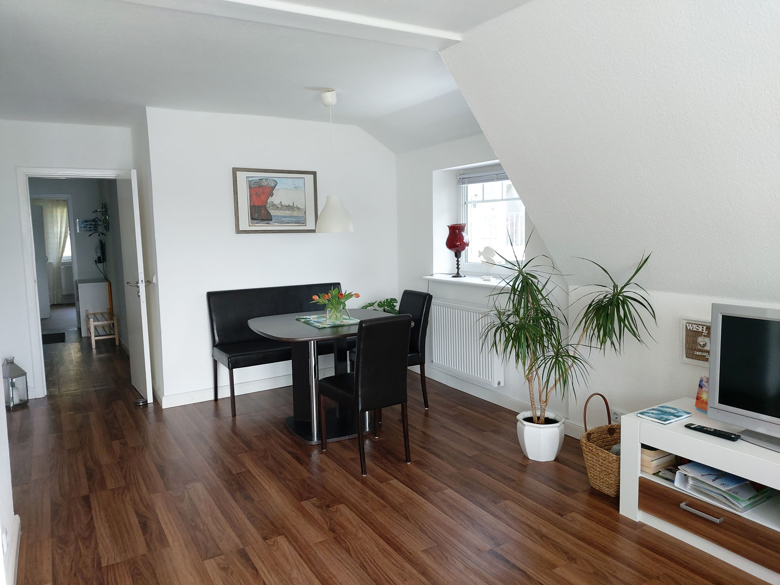 Schöne Ferienwohnung mit 4 Bettenplätzen im Obergeschoss Schiffergang 1 in 24376 Kappeln an der Schlei und nahe der Ostsee. Das große Grundstück ist direkt am Schleiufer und besitzt einen Steg. Aus dem Haus haben Sie einen direkten Blick auf die Schlei und die Kappelner Skyline. Genießen Sie aus dem Wohnzimmer oder von der großen Terrasse den einmaligen Blick über die Schlei (Ostseefjord) auf den letzten Heringszaun Europas und auf den Hafen und die Altstadt von Kappeln (Deekelsen). Vom Ufer neben unserem Ferienhaus wurden auch Aufnahmen für die ZDF Serie: "Der Landarzt" aufgenommen. Die Kleinstadt Kappeln mit ca. 10.000 Einwohnern ist im Film der fiktive Ort "Deekelsen" an der Schlei. Die Raumaufteilung ist wie folgt: Großer Wohnraum mit separatem Essplatz, Küche mit neuer Einbauküche, 3 Schlafräume mit je 2 Betten, 2 Duschbäder mit WC. (bei Buchung von 2 Personen wird nur 1 Duschbad gestellt, alternativ 2 Duschbäder gegen höhere Reinigungspauschale.) Eine schöne Terrasse und ein großer Garten stehen Ihnen ebenso wie ein PKW Stellplatz zur Verfügung. Weitere Stellplätze befinden sich in ausreichender Zahl nur ca. 50m entfernt. Das Ufergrundstück ist 2700 m² groß und bietet genug Platz zum Sonnenbaden, relaxen oder spielen. Der Schiffergang ist eine ruhige Anlieger-Sackgasse. Zum Schleiufer sind es nur wenige Schritte. Hier befindet sich Ihr privater kleiner Holzsteg mit Sitzgelegenheit. Von dort haben Sie einen der schönsten Ausblicke auf den Heringszaun, die Schleibrücke, den Hafen mit Ausflugsschiffen, Gastliegerhafen und auf die Altstadt von Kappeln – genießen Sie es! Natürlich können Sie auch von der Terrasse oder aus dem Wohnzimmer die Schlei und den neuen Heringszaun bewundern. Mit den schönen Eindrücken krönen Sie den Tag bei einem traumhaften Sonnenuntergang über Kappeln und der Schlei von der Terrasse oder aus dem Garten Ihres Ferienhauses. Sie können von unserem Ferienhaus zu Fuß, mit dem Rad oder dem Auto, Kappeln und die Landschaftsteile Angeln und Schwansen und die nahe Ostsee erkunden. In der Nähe gibt es viele weitere Sehenswürdigkeiten wie das Landesmuseum Schloß Gottorf und das Wikingermuseum Haitabu in Schleswig, das Wasserschloß Glücksburg, Multi Mar Wattforum (Wale, Watt, Weltmeere) in Tönning, die Phänomenta (eine interaktive Ausstellung) in Flensburg, eine Museumsbahn fährt zwischen Kappeln und Süderbrarup, Fischmarkt in Kappeln und Eckernförde, Schleifahrten mit einem Raddampfer, Tolkschau Freizeitpark, Damp Wellnesscenter mit Entdeckerbad für die Kleinen und vieles mehr. Weitere Sehenswürdigkeiten in Kappeln Sehenswürdigkeiten in der Schlei Region
